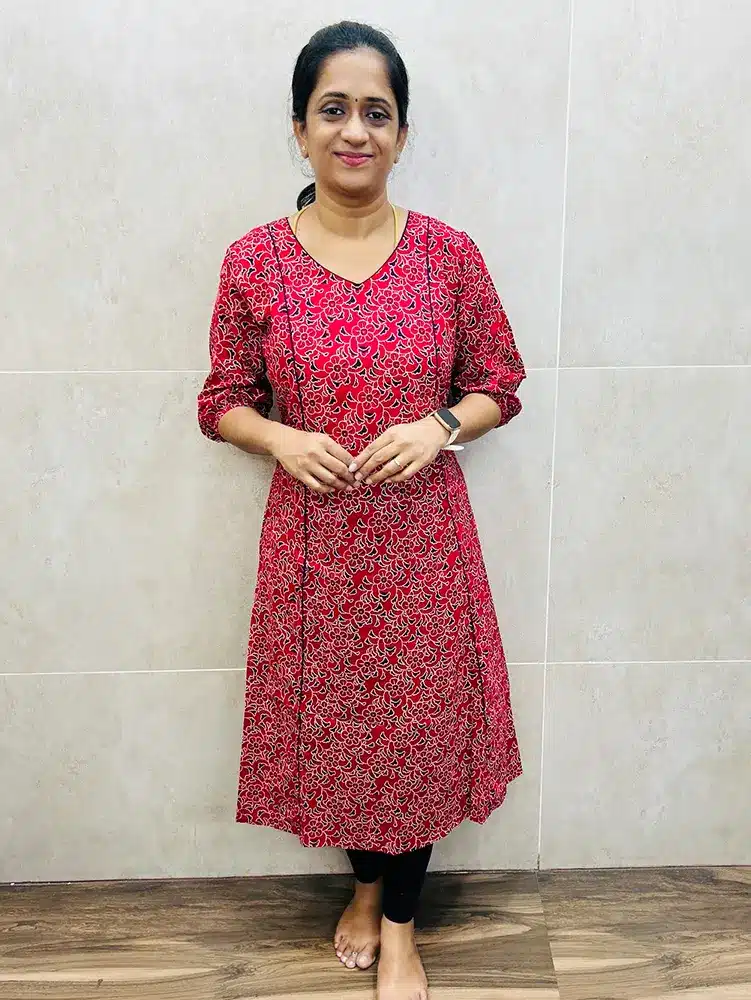 Ajrakh printed cotton top (cotton lining) with allover piping work and elastic sleeves (Aline Panelcut)