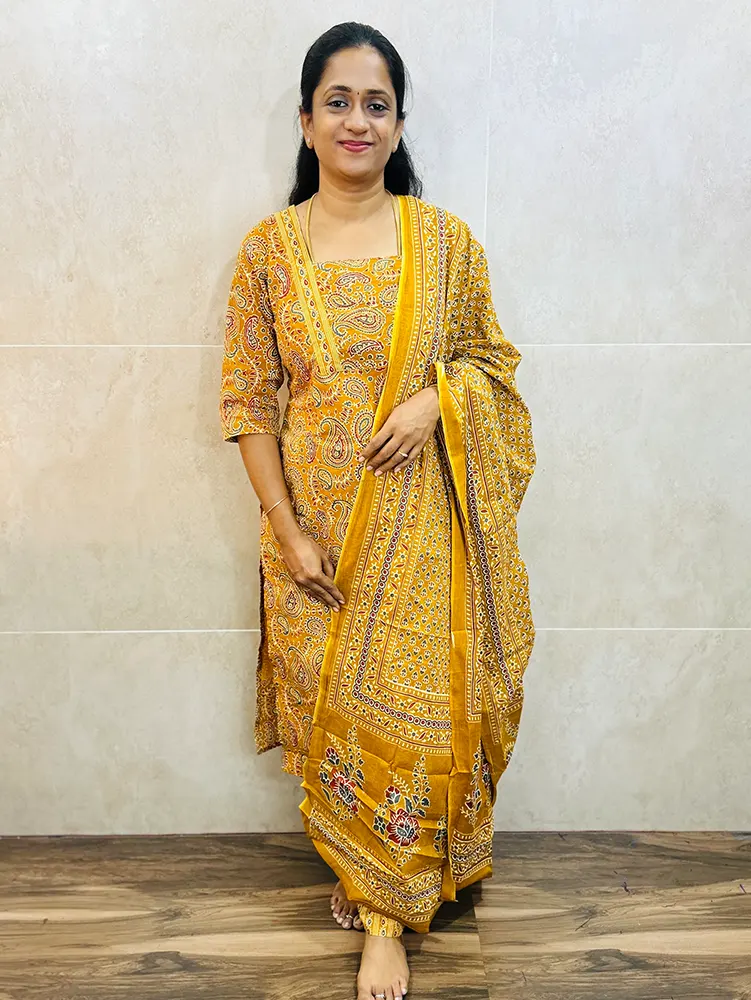 Ajrakh dyed cotton top (cotton lining) paired with cotton dupatta and cotton bottom (free size)