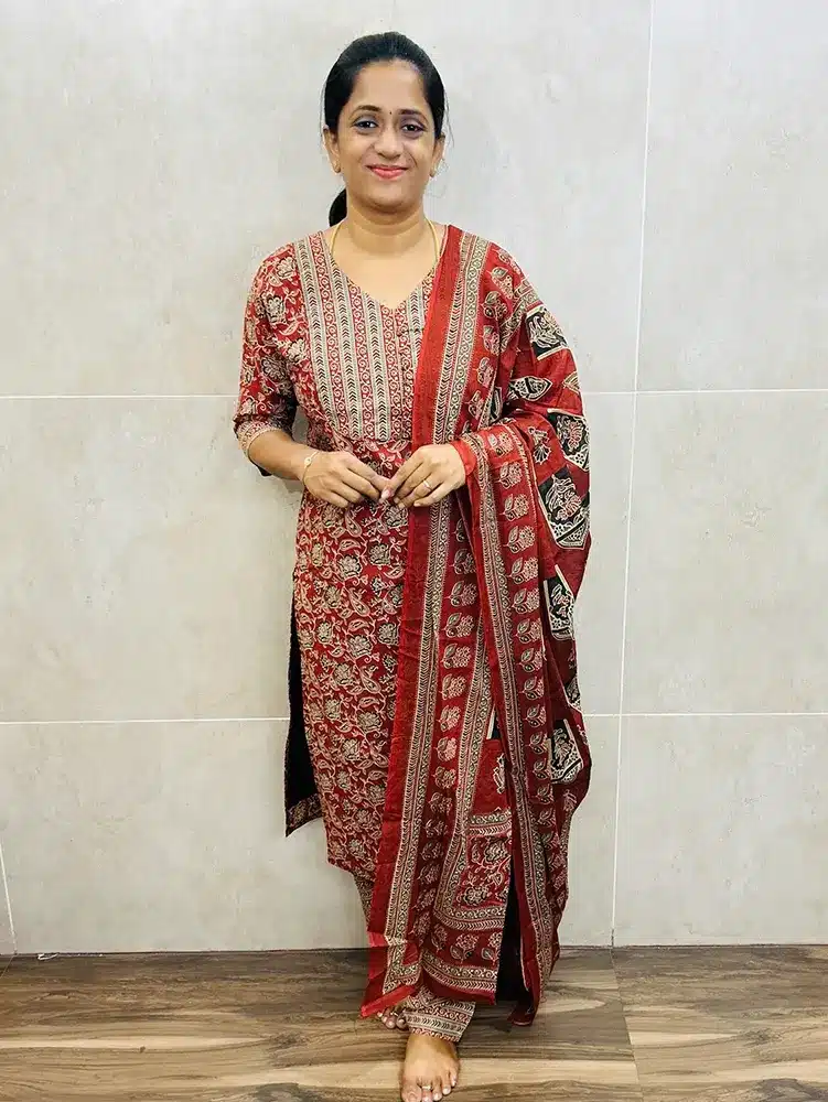 Top only – Red – Ajrakh printed cotton top (cotton lining)