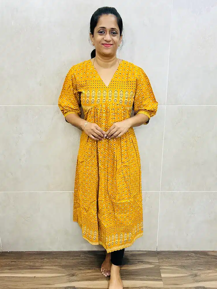 (Yellow)Ajrakh printed cotton top(Alia cut pattern)