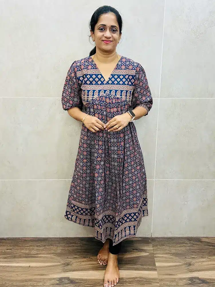 Blue – Ajrakh printed cotton top with cotton lining (Alia cut pattern)