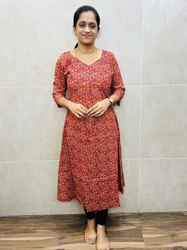 Ajrakh printed cotton top with fancy buttons on yoke (Aline pattern)