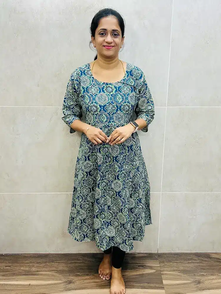 Ajrakh printed cotton top (cotton lining) with fancy buttons on yoke (Anarkali pattern)