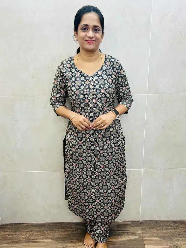 (Pattern 1- Black)Ajrakh printed Rayon top paired with printed rayon bottom (straight cut)