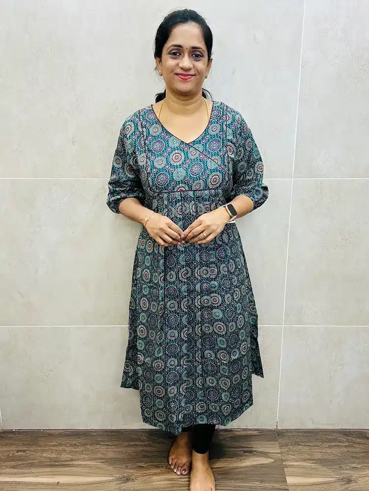Ajrakh printed soft silk top (cotton lining) with pleated pattern (Aline pattern)
