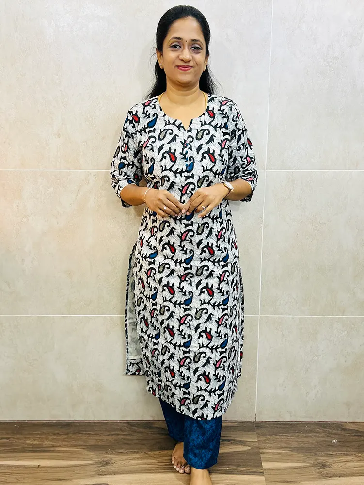 Blue – Batik printed cotton rayon top (cotton lining) paired with printed cotton rayon bottom (straight cut)