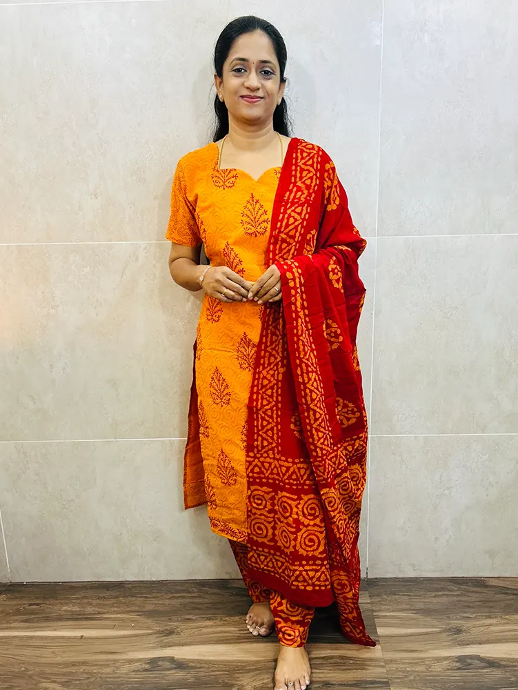 (Dispatch in 15working days)Batik printed cotton top (cotton lining) paired with Batik printed cotton dupatta and cotton bottom (free size)