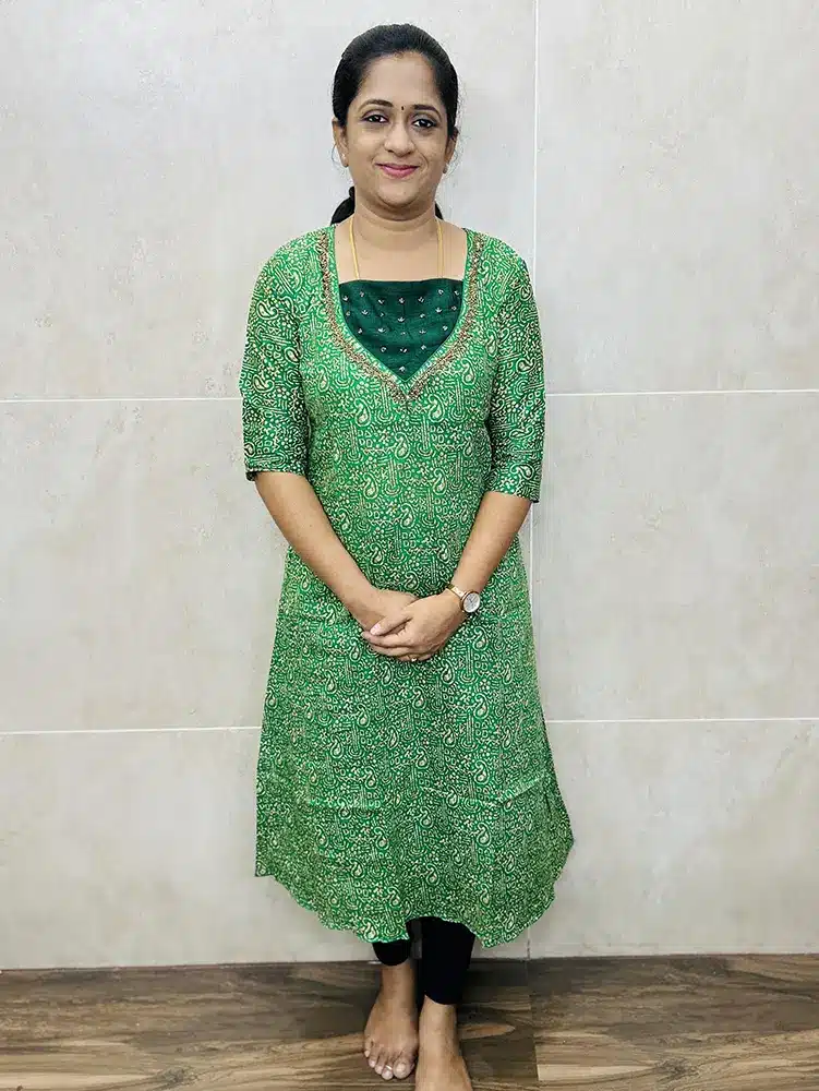 Batik printed cotton top with designer handwork on yoke (Aline Pattern)