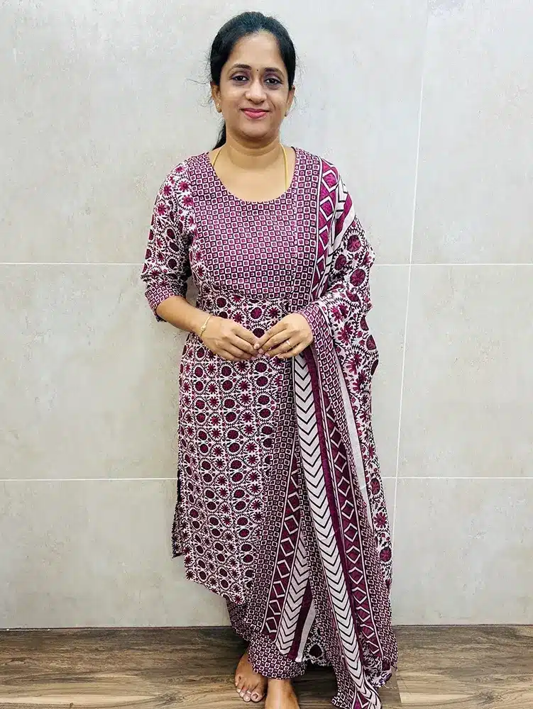 Batik printed Rayon top (crepe lining) paired with printed premium chiffon dupatta and rayon bottom (straight cut)