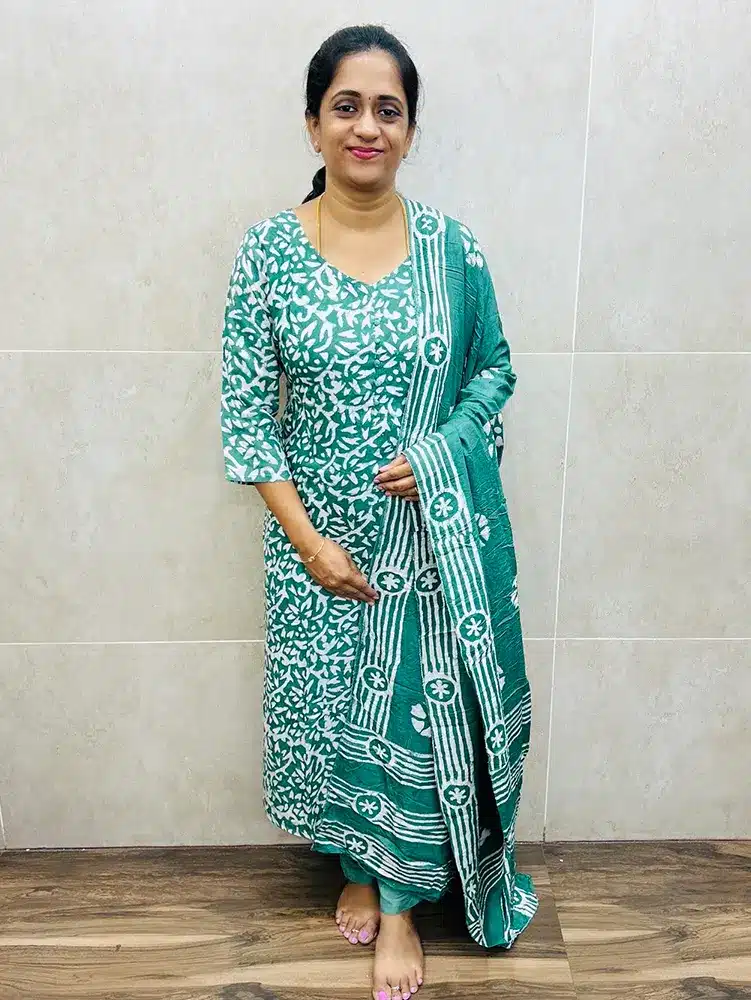 Pale Green – Batik printed rayon top paired with printed rayon dupatta and rayon bottom (straight cut)