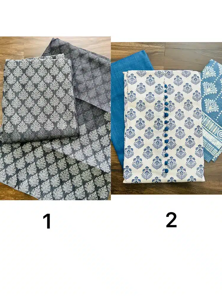 Most of our cotton salwar suits, measurement of the top will be 2.5 meters, dupatta will be from 2.2 to 2.5 meters and bottom will be 2 meters. If you have measurement constraint, please check with us through whatsapp (9176641794) prior booking.