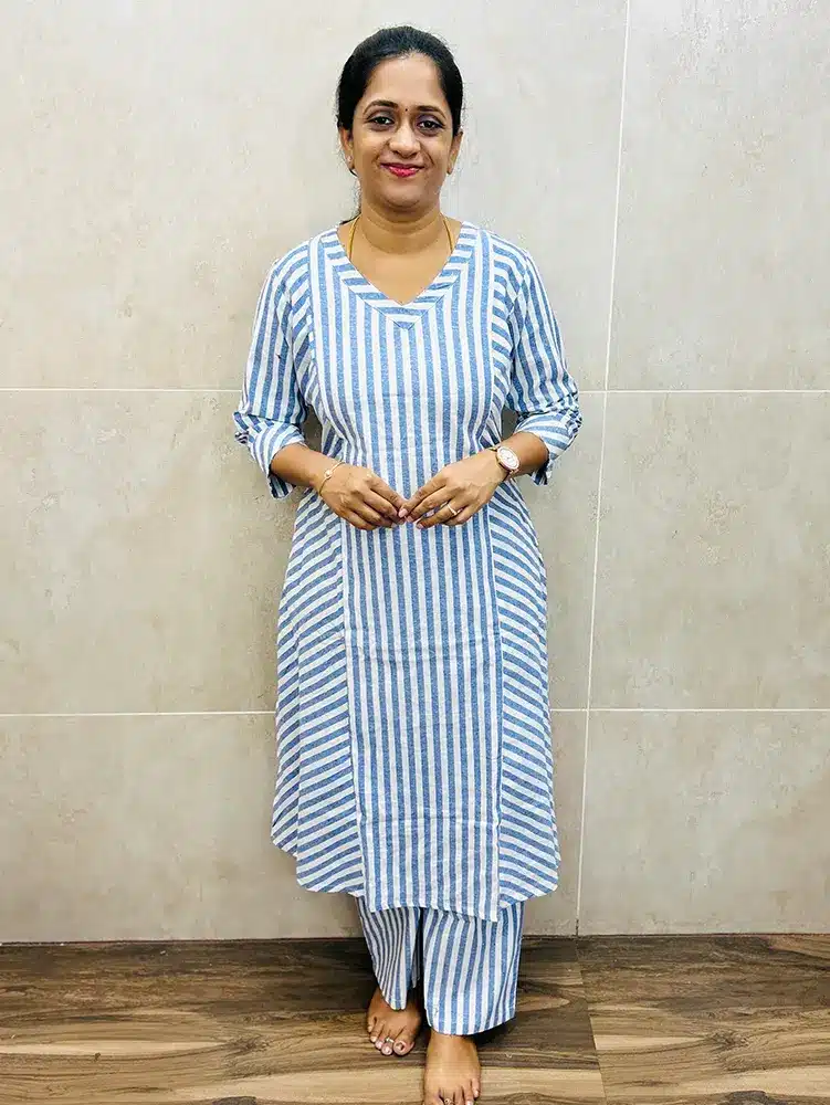 Pure cotton top with all over stripes weaving paired with pure cotton bottom-1-side pocket (Aline pattern)