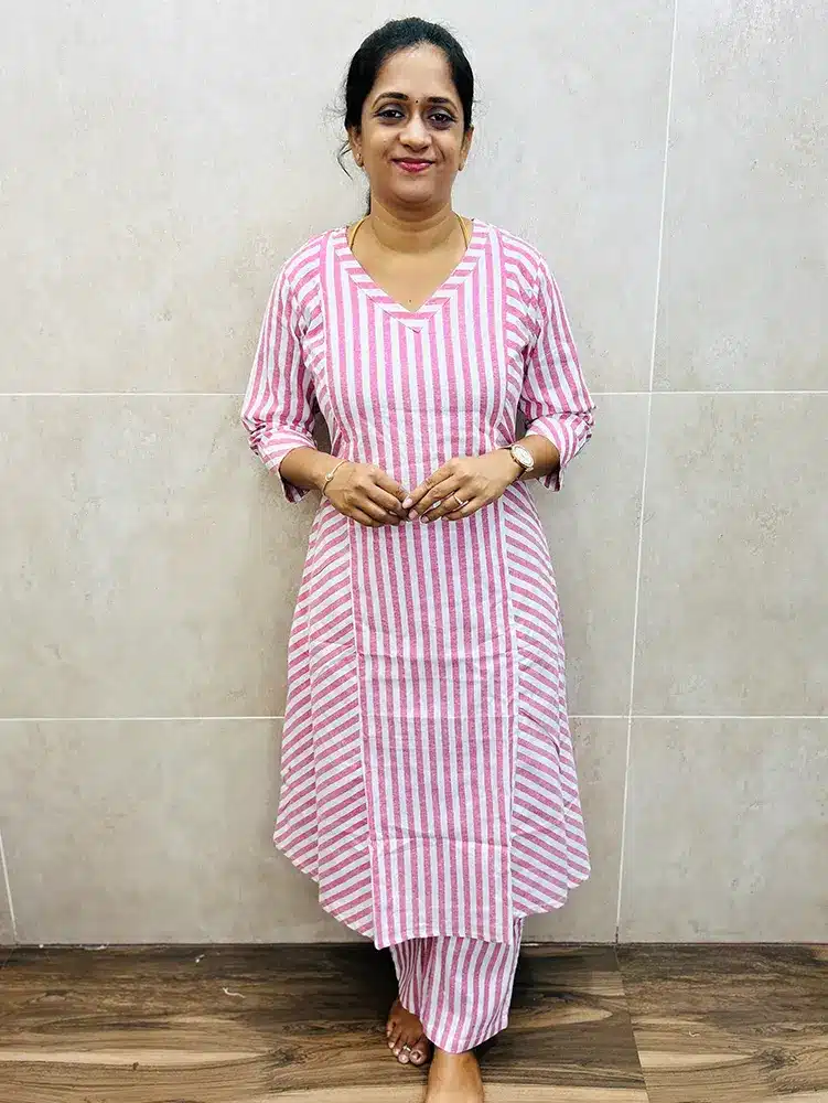 Pure cotton top with all over stripes weaving paired with pure cotton bottom-1-side pocket (Aline pattern)