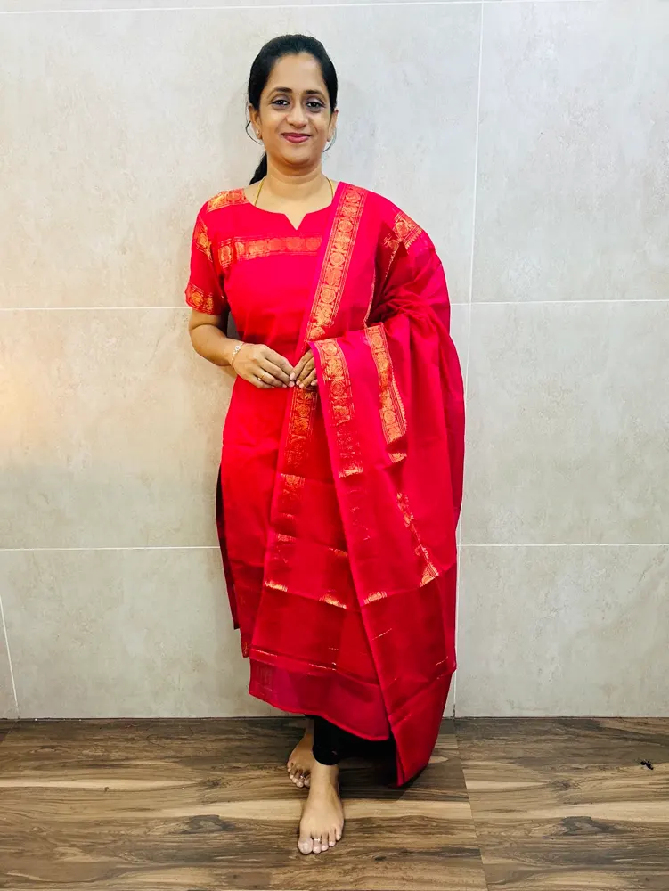 (Dark Pink)Kanchi cotton top (cotton lining) paired with Kanchi cotton dupatta