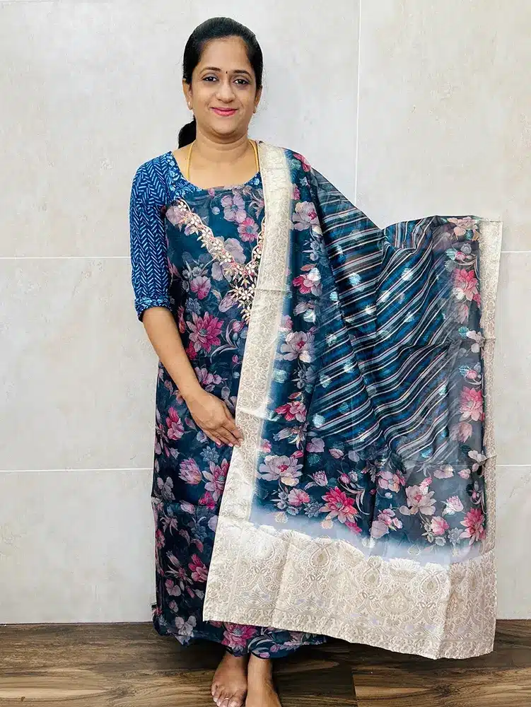 Digital printed Organza top with organza dupatta and cotton silk bottom