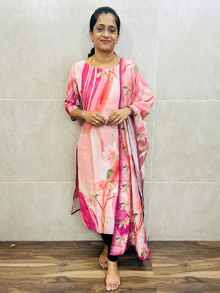 Digital printed Premium linen cotton top (cotton lining) paired with linen cotton dupatta