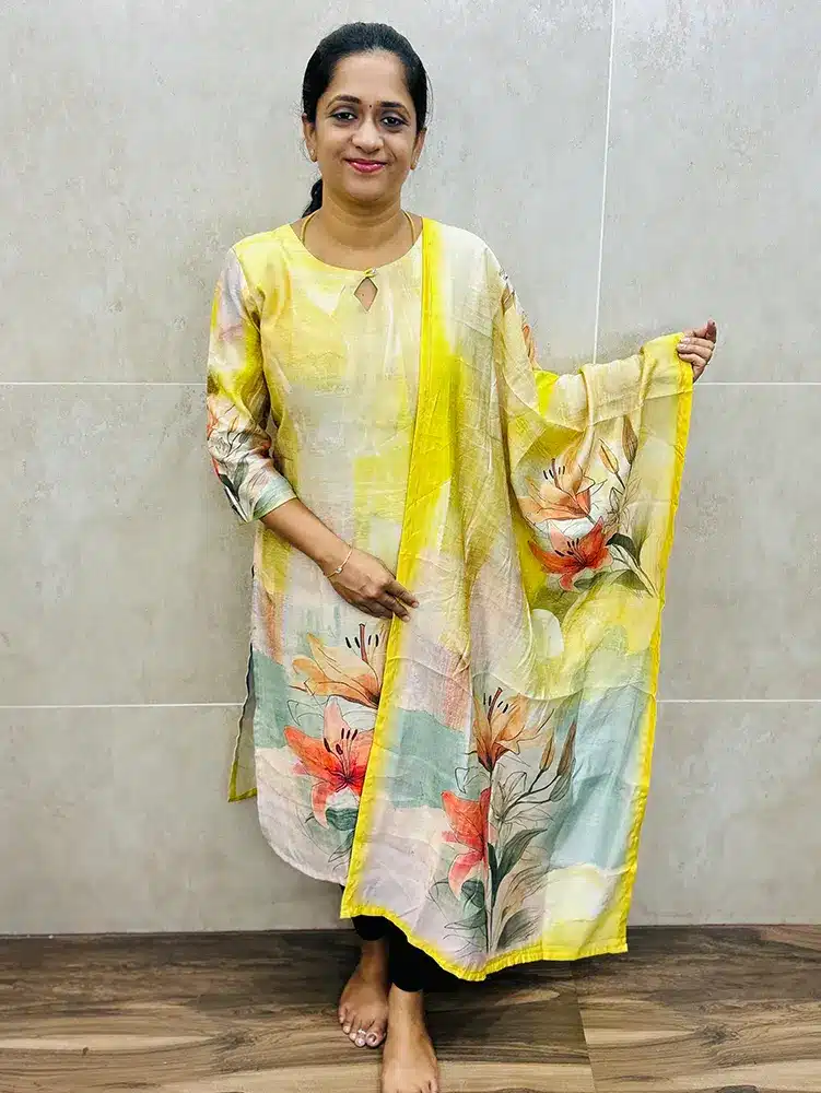 Digital printed Premium linen cotton top (cotton lining) paired with linen cotton dupatta