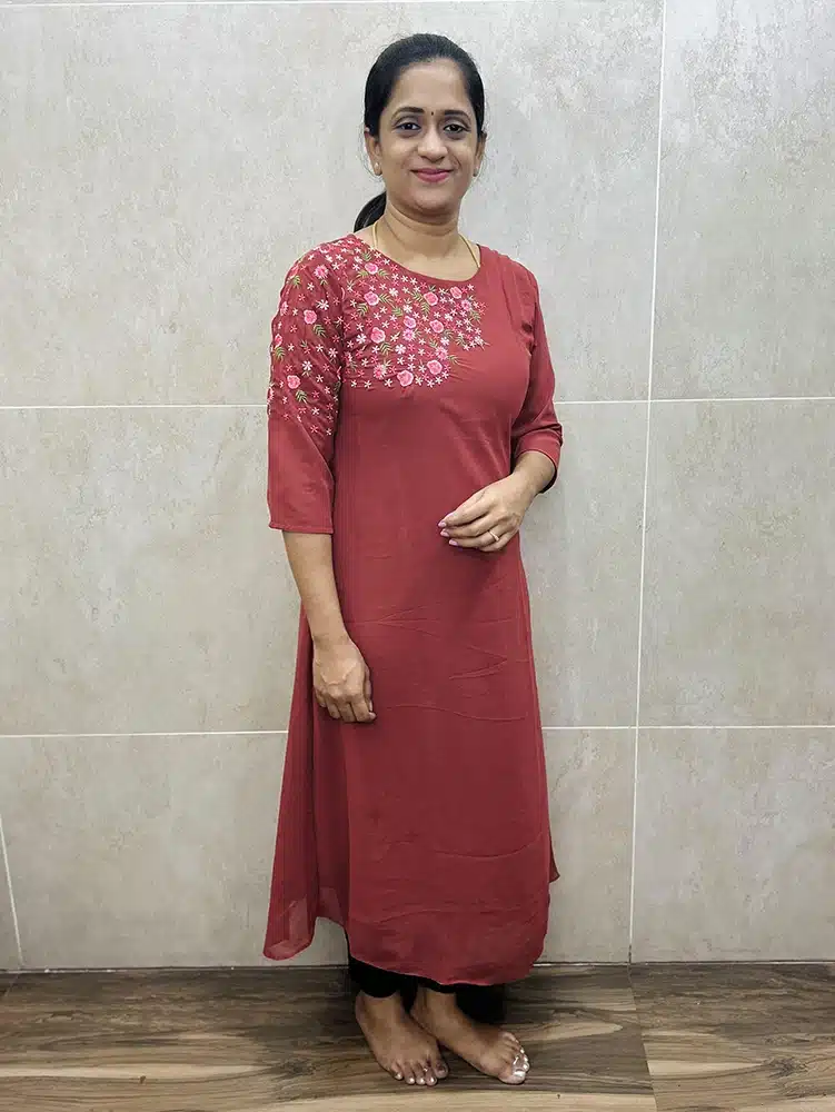 Georgette top (crepe lining) with unique embroidered pattern on shoulders and sleeves (Aline pattern)