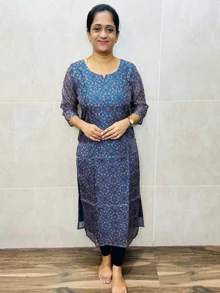 (Blue)Ajrakh printed Kota cotton top with crepe lining(straight cut)