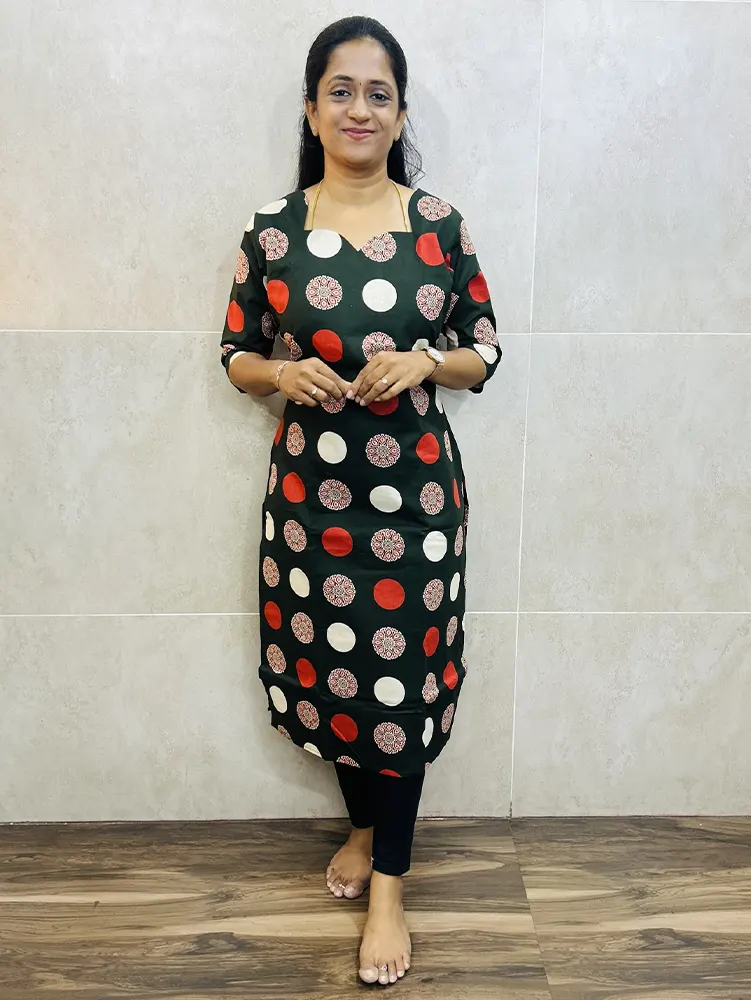 Dark Green -Handblock printed cotton top with cotton lining (straight cut)
