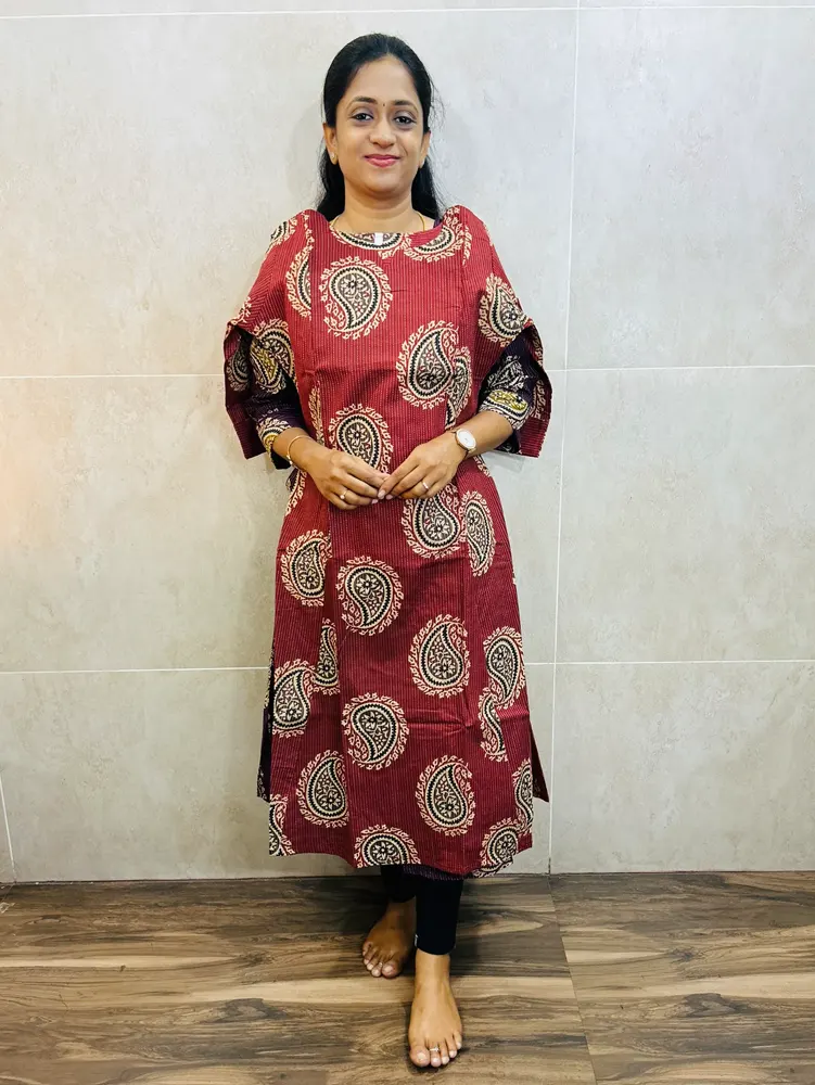Handblock printed jaipur kantha cotton top with cotton lining(Aline pattern)