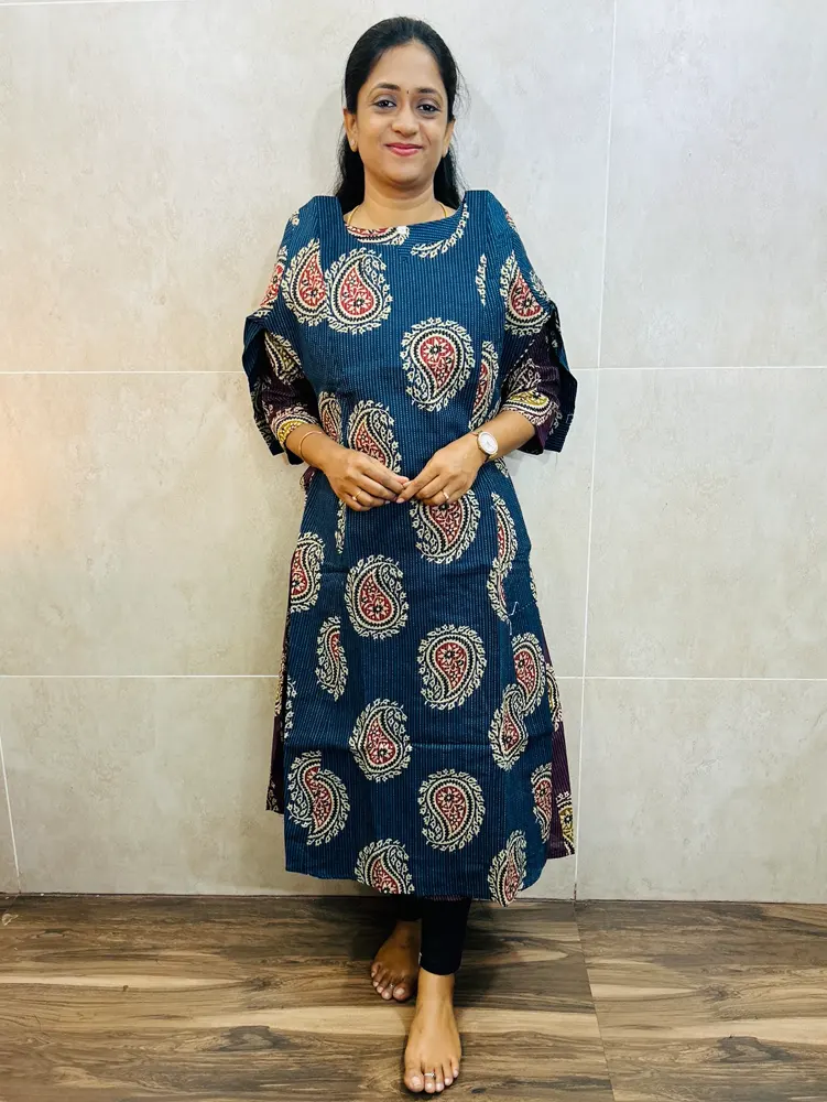 Handblock printed jaipur kantha cotton top with cotton lining(Aline pattern)