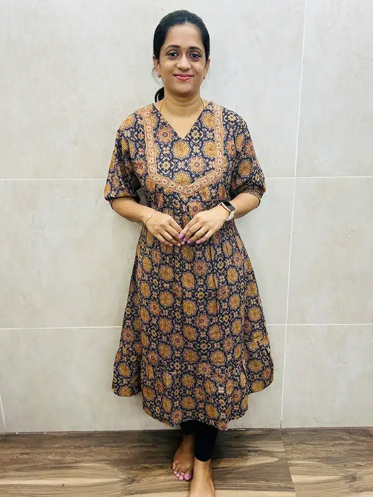 Pattern 2 Navy Blue – Handblock printed Jaipur Kantha cotton top with cotton lining (Aline pattern)
