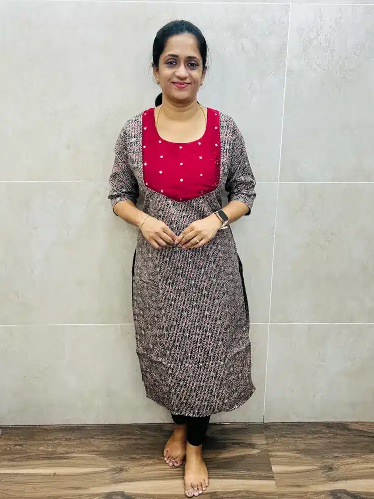 (Pattern 2-Black)Handblock printed kantha cotton top(cotton lining) with mirrorworked yoke(straight cut)