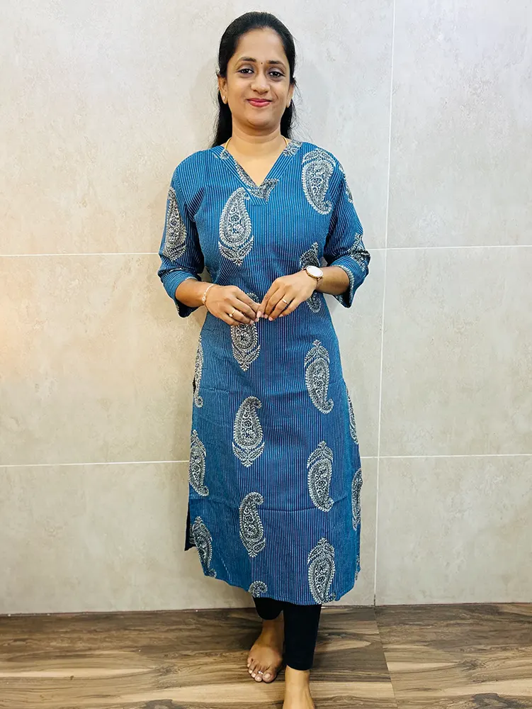 Handblock Printed Kantha cotton top with cotton lining (straight cut)