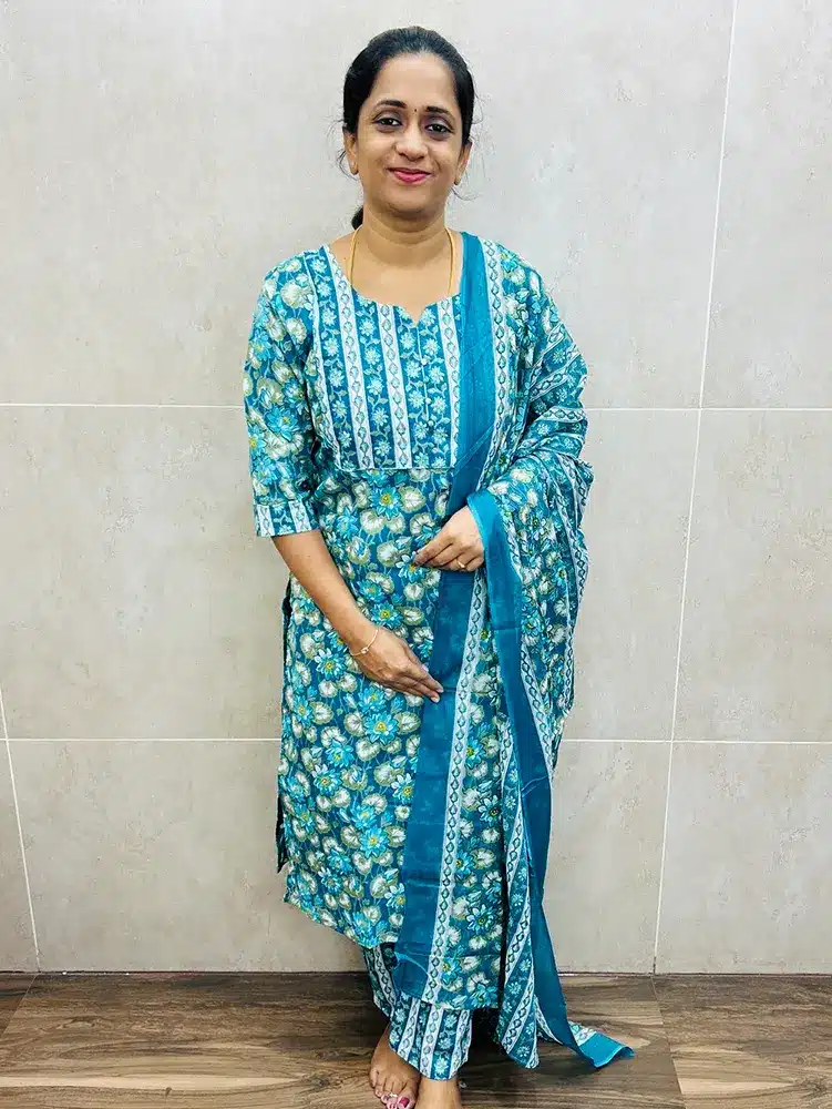 Handblock printed pure Jaipur cotton top with printed cotton dupatta and printed cotton bottom (1-side pocket)