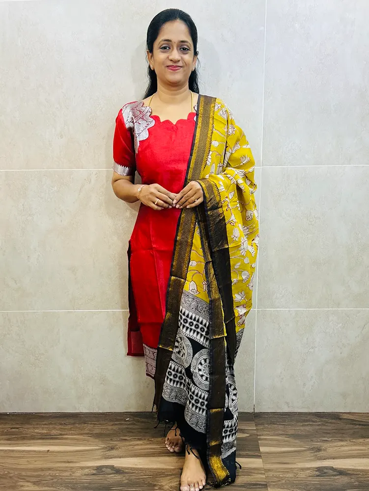 Handloom Mangalagiri silk top (cotton lining) paired with printed Kalamkari silk dupatta