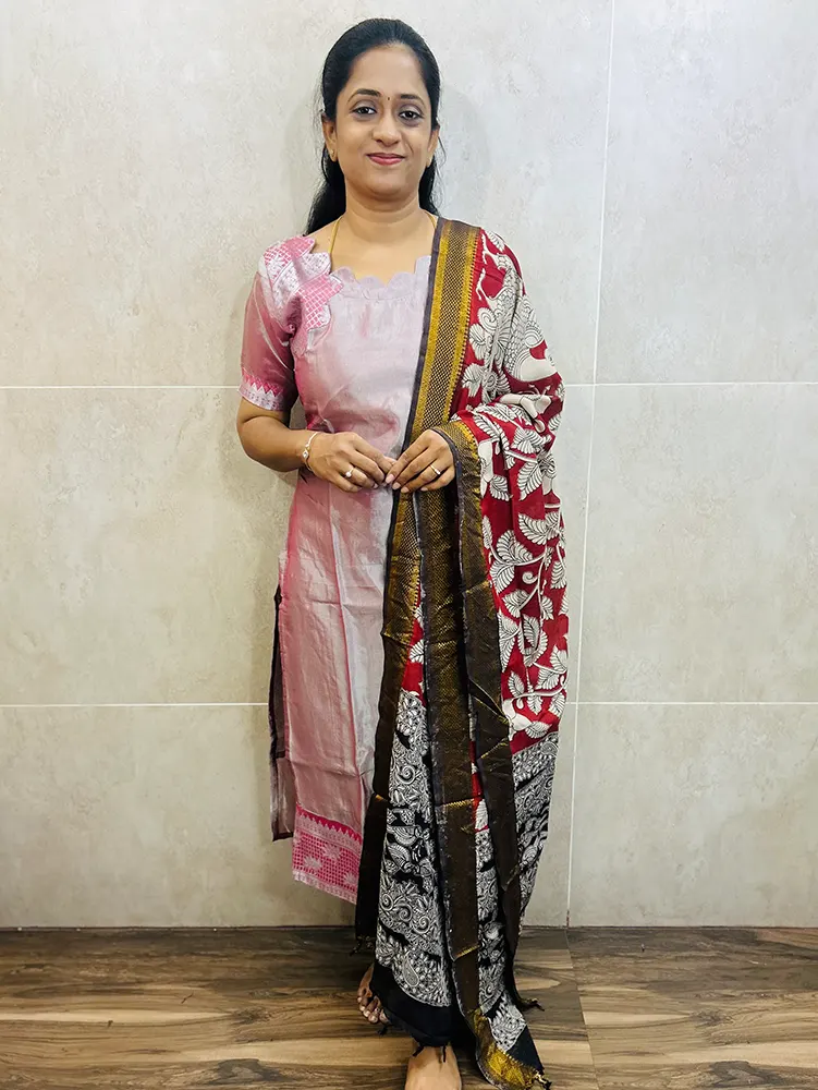 Handloom Mangalagiri silk top (cotton lining) paired with printed Kalamkari silk dupatta