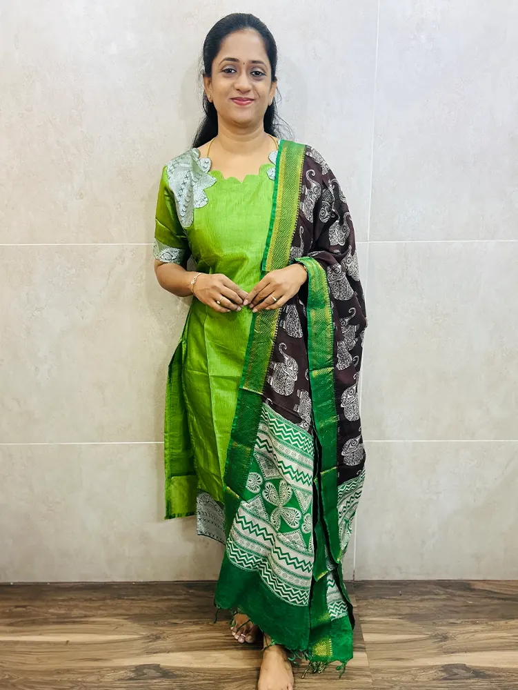 Handloom Mangalagiri silk top (cotton lining) paired with printed Kalamkari silk dupatta