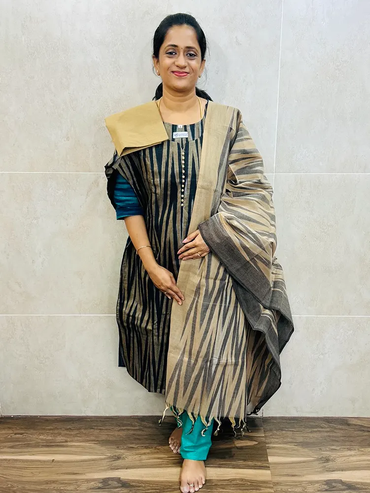 Ikkat cotton top (cotton lining) paired with Ikkat cotton dupatta and cotton bottom (straight cut)