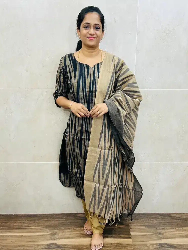 Ikkat cotton top (cotton lining) paired with Ikkat cotton dupatta and cotton bottom (straight cut)