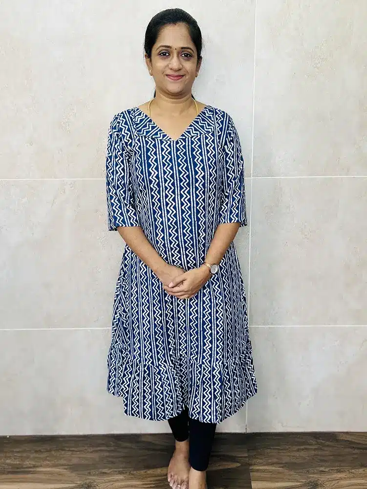 Imported printed Rayon Top with Peter Pan collar( Aline frock pattern)