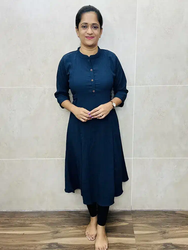 Imported stretchable Rayon top with fancy buttons on yoke (Princess cut Aline pattern)