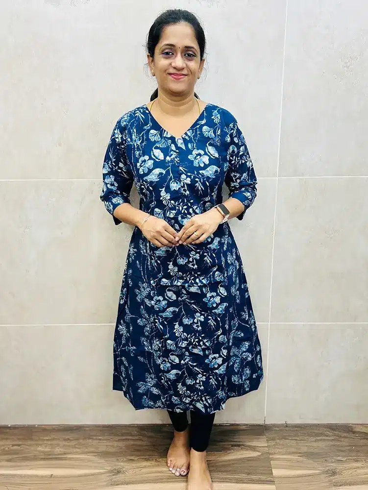 Pattern 2 – Indigo dyed Jaipur cotton top (cotton lining) with Potli work on yoke (straight cut)