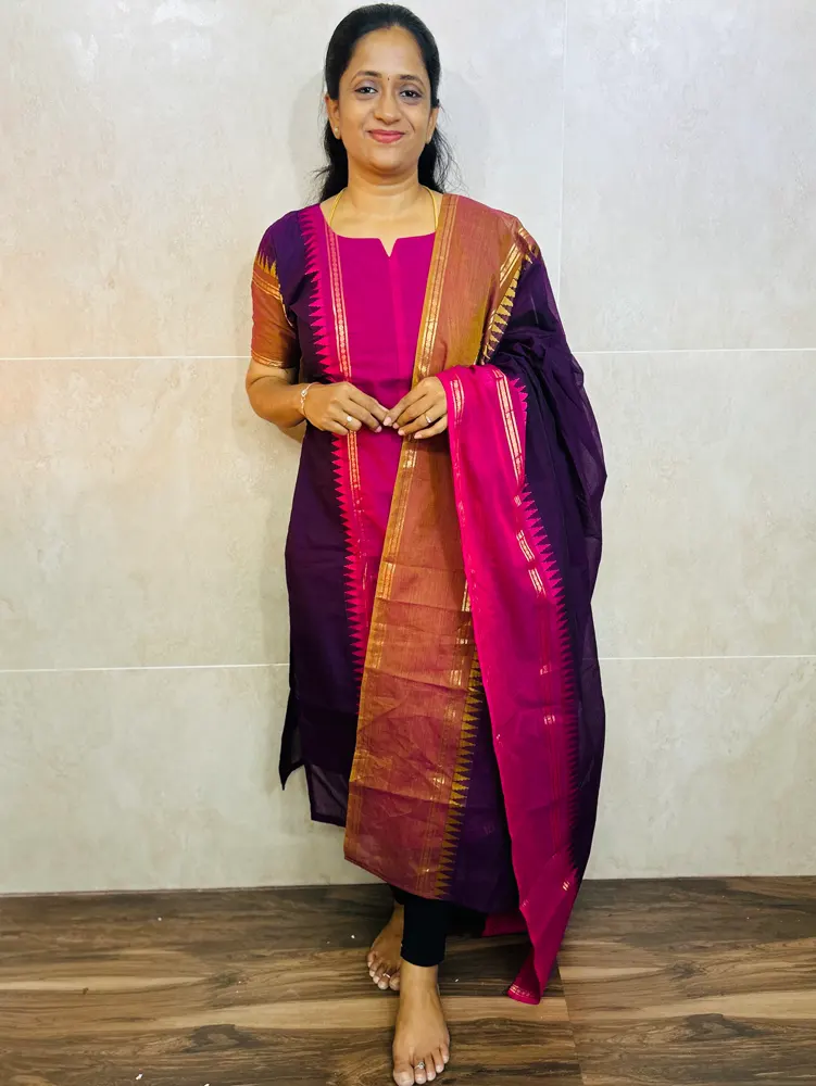 (Dispatch in 10working days)Kanchi cotton top (cotton lining) paired with Kanchi cotton dupatta