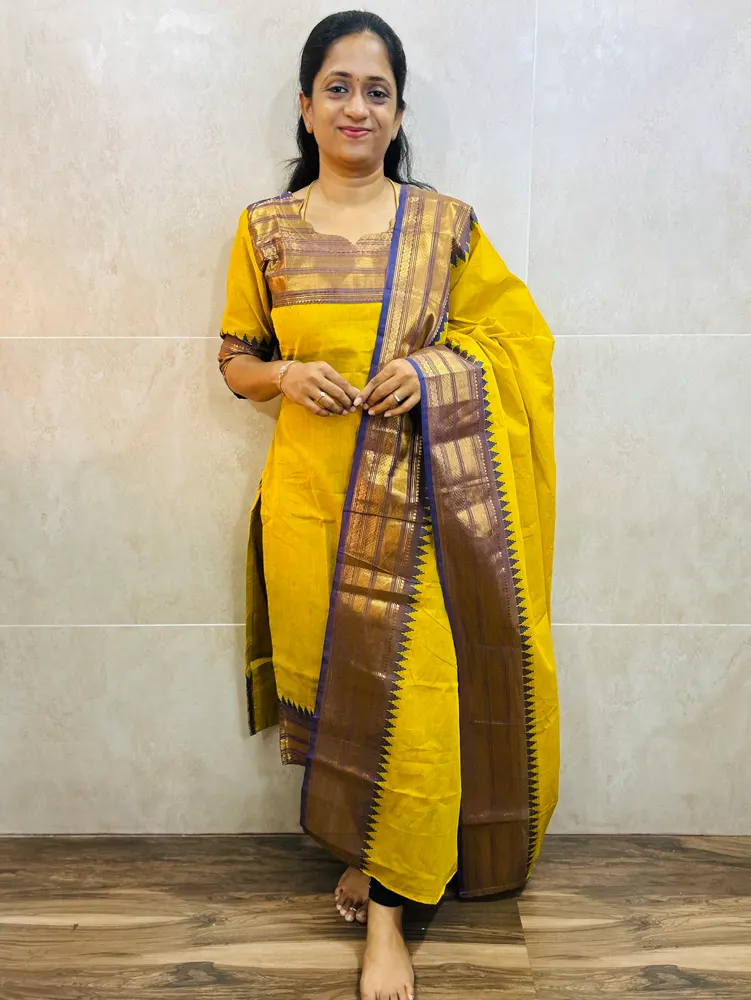 (Dispatch in 10 working days)Kanchi cotton top (cotton lining) paired with Kanchi cotton dupatta