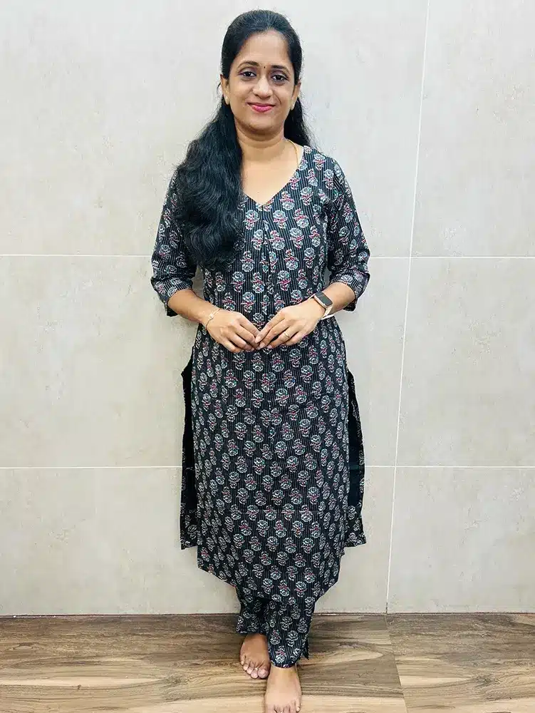 Black – Handblock printed Kantha cotton top (cotton lining) paired with printed cotton bottom (straight cut)