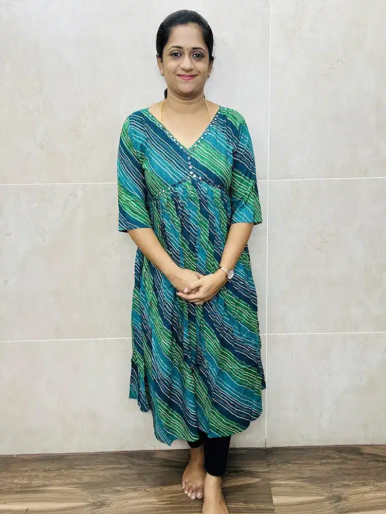 Lehariya printed Imported Rayon top with mirror worked yoke (Alia Cut)