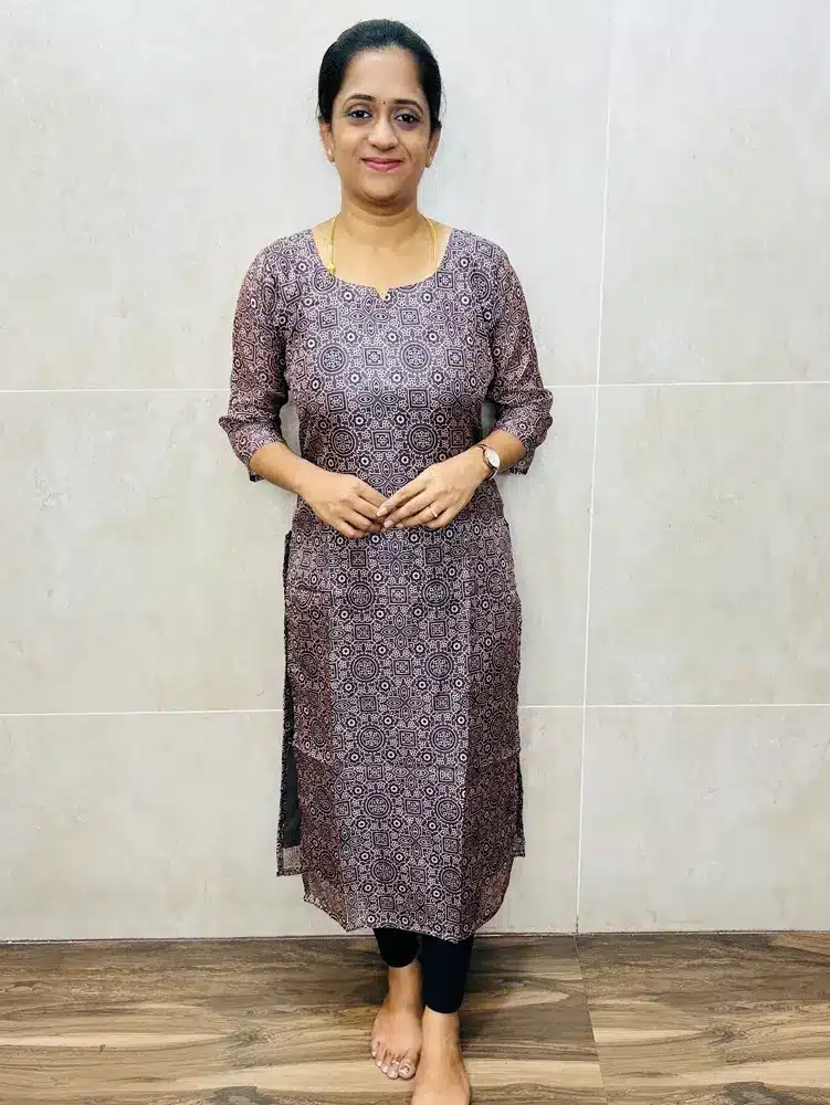 Ajrakh printed Kota cotton top with crepe lining(straight cut)