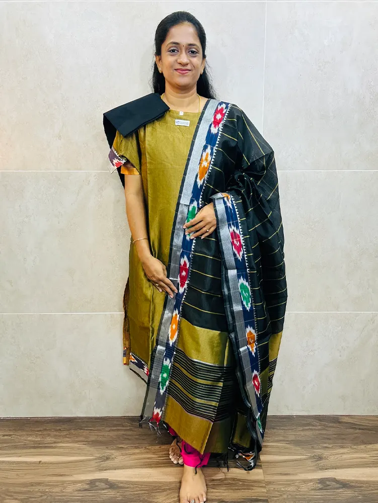 Mangalagiri silk top (cotton lining) with Pochampally borders paired with Mangalagiri silk dupatta and cotton bottom (free size)