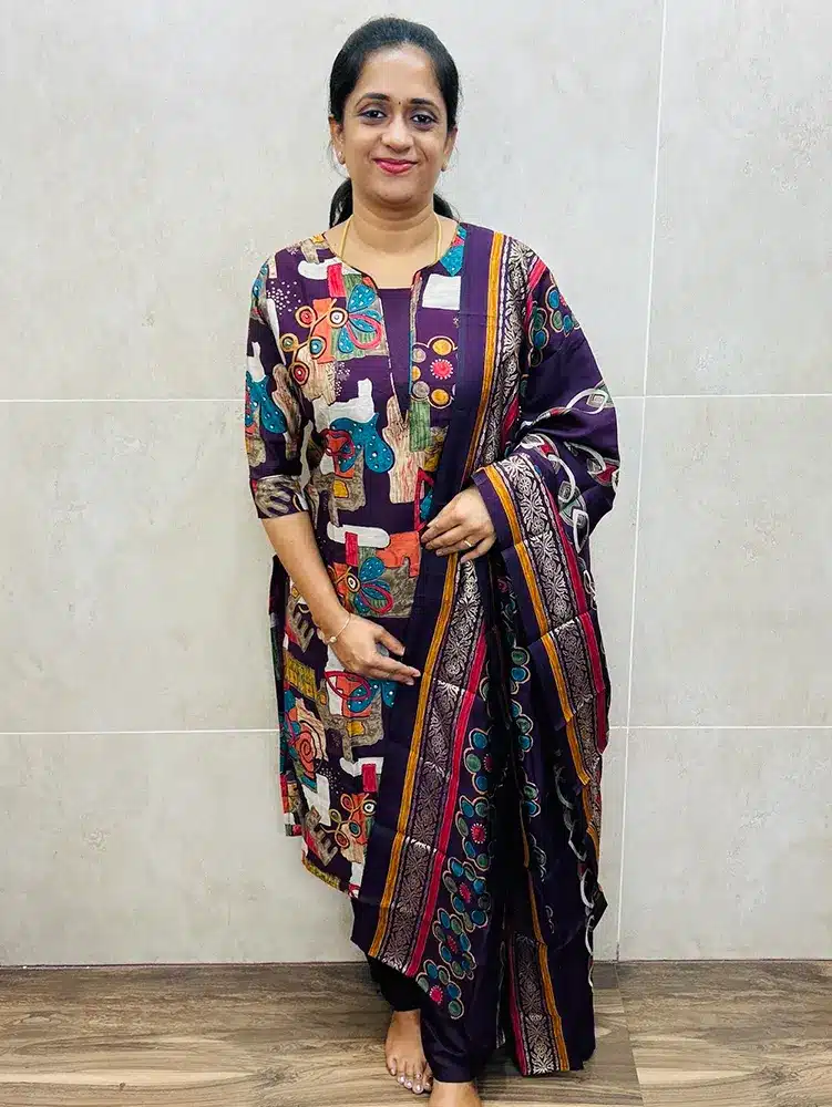 Printed premium muslin silk top (cotton lining) paired with printed muslin silk dupatta and silk bottom (straight cut)