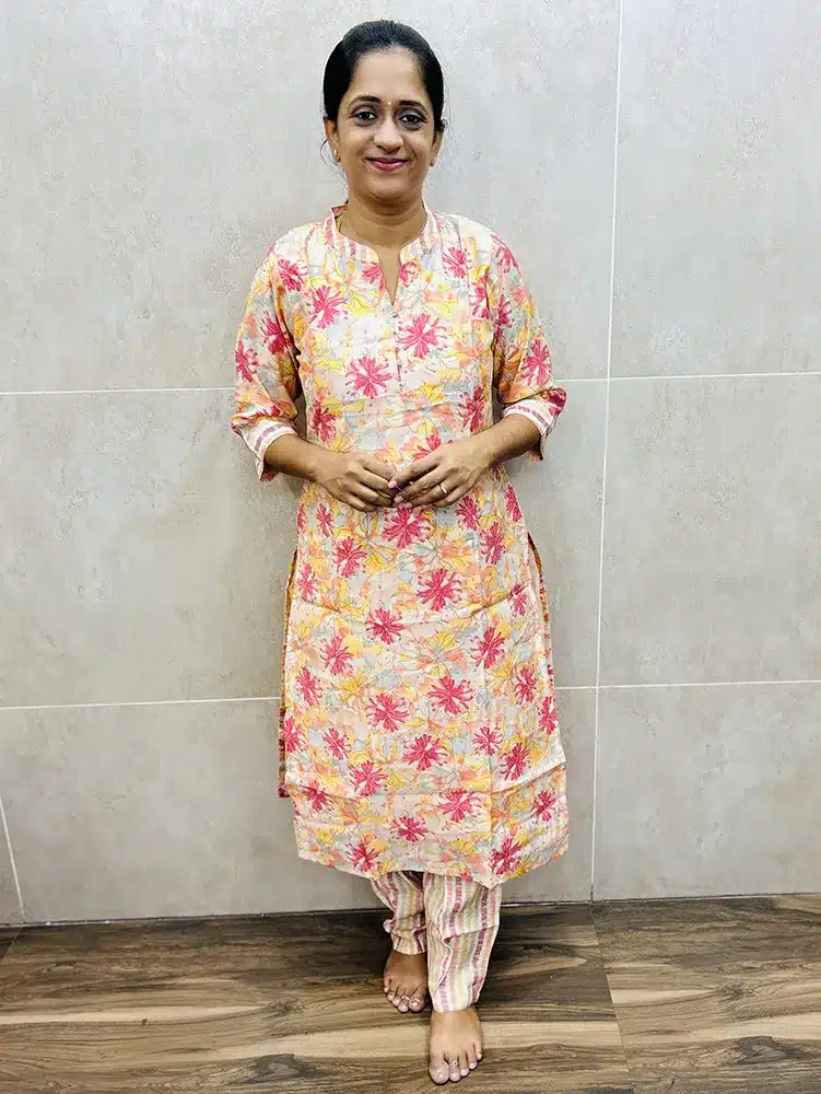 Printed premium muslin silk top (cotton lining) paired with printed muslin silk bottom (straight cut)