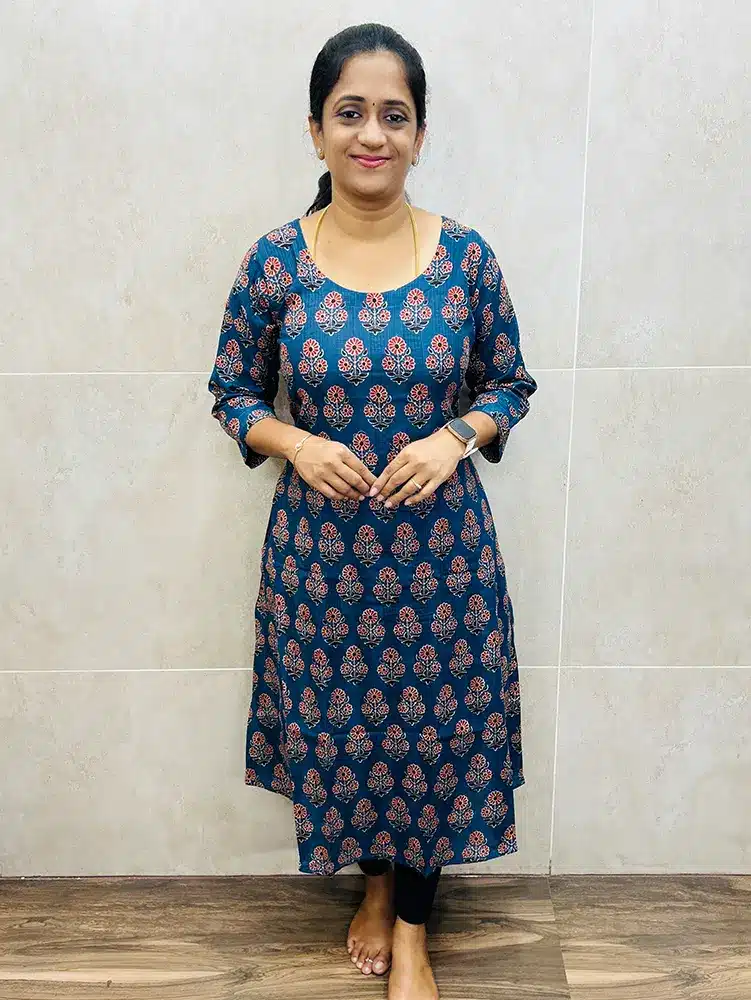 Indigo blue – Natural dyed Handblock printed Ajrakh cotton Kurtis with 2-side pockets (Aline pattern)