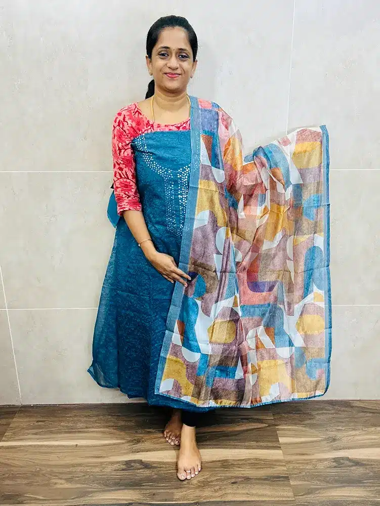 Most of our cotton salwar suits, measurement of the top will be 2.5 meters, dupatta will be from 2.2 to 2.5 meters and bottom will be 2 meters. If you have measurement constraint, please check with us through whatsapp (9176641794) prior booking.