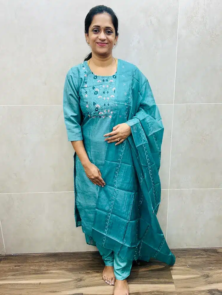 Premium soft semi tussar top(crepe lining)with embroidered yoke paired with embroidered soft Kota dupatta and silk bottom(straight cut)