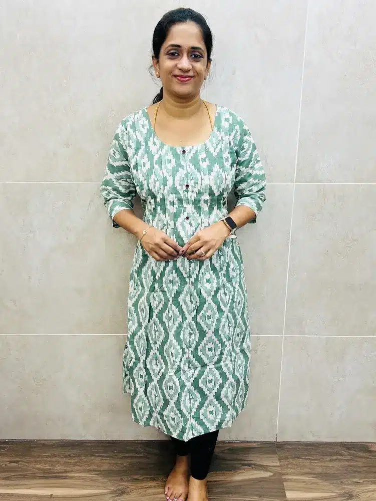 Premium cotton top with pintuck and fancy buttons on yoke(Aline pattern)